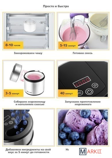 | Приготовление продуктов | мороженое, мороженые десерты, сорбет |