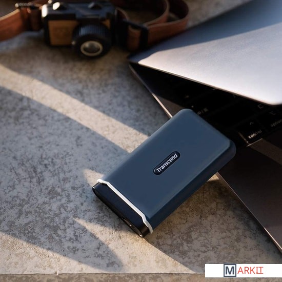 Накопитель ESD370C помещен в стильный силиконовый корпус темно-синего цвета, который обеспечивает защиту и ударопрочность этого устройства. Благодаря наличию системы защиты от падения, соответствующей требованиям стандартного теста на падение армии США, вы можете быть уверены в безопасности информации, которая хранится на накопителе. Чрезвычайно компактный и портативный, ESD370C с легкостью помещается на ладони или в кармане, что делает его удобным аксессуаром для любого путешествия.